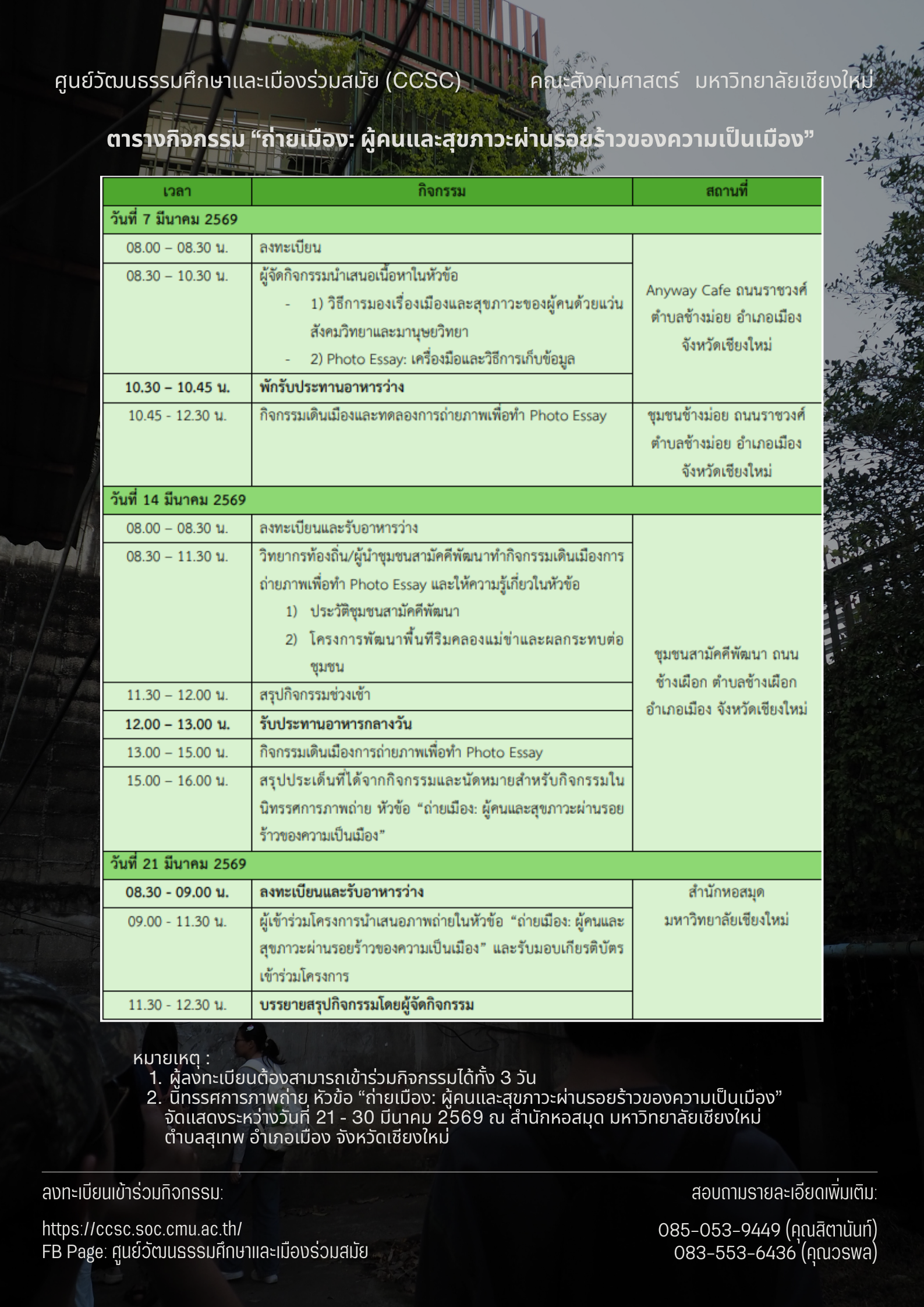 กิจกรรมโดย ศูนย์วัฒนธรรมศึกษาและเมืองร่วมสมัย (CCSC) 🧡💚